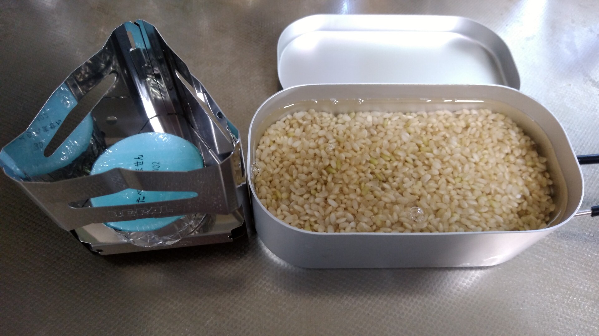 ダイソー メスティン 炊飯 固形燃料-22 2.固形燃料に着火します 221 1.開始直後 :メスティンに水滴が付着します 次回試したいことは、メスティン折を使用して05合の炊飯です。メスティン折を使用した場合、熱の伝わり方が弱まるので、固形燃料が燃え尽きるまで置いておいてもいけそうな気がします。 ※ メスティン折を使用した炊飯について掲載しました。